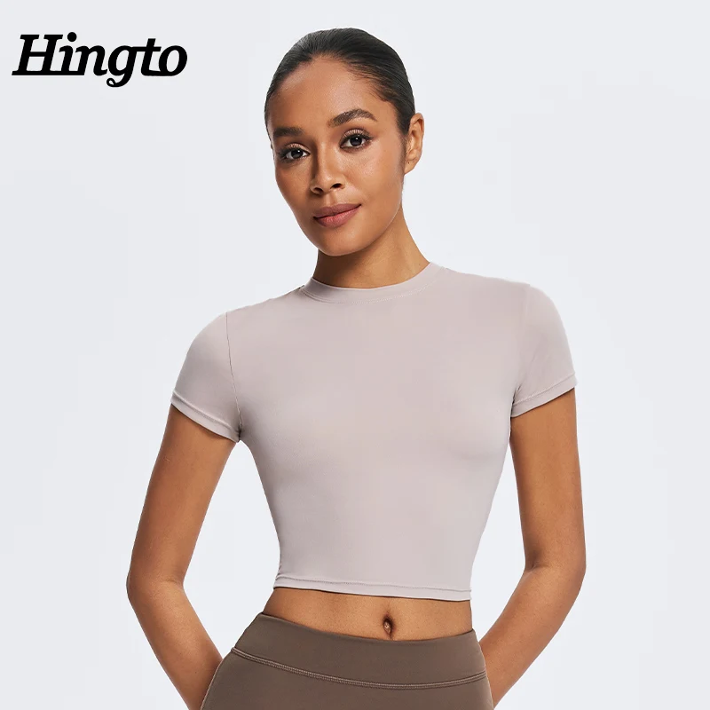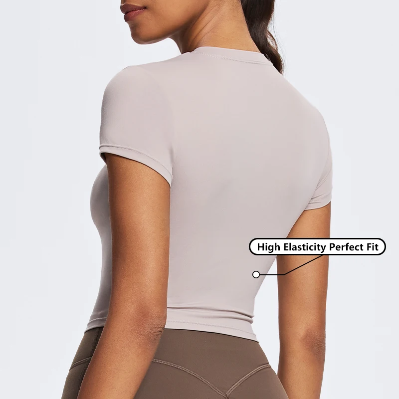 Soft Blank Crop T Shirt 80%Nylon 20%Spandex Wholesale Running Yoga Top Custom Logo Short Sleeve Shirts Women Slim Fit Tshirts
